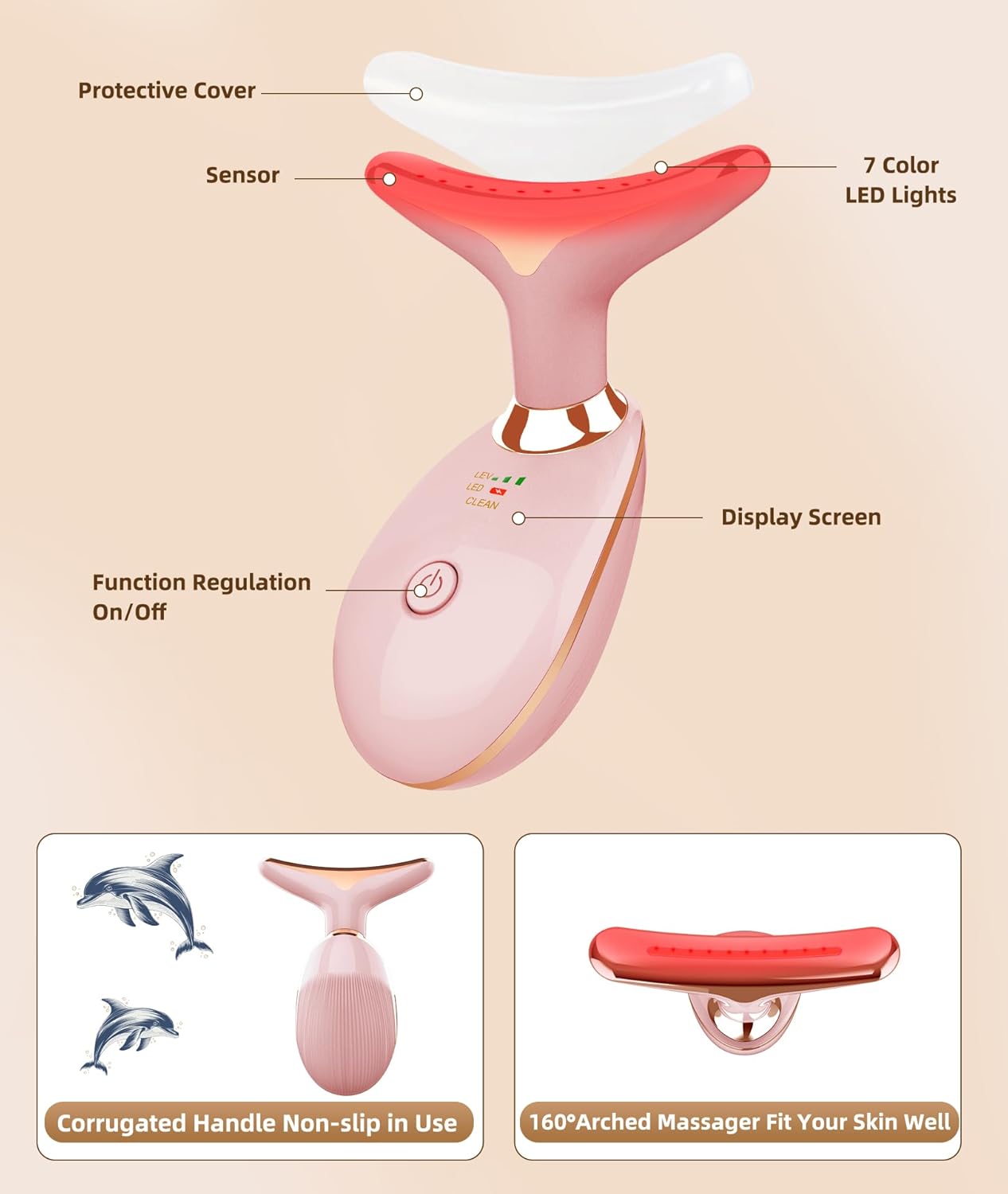 - 7 Color Face Light Therapy - Our face contouring device is not just a skin care tool but a double chin reducer. The uniquely arched massager fits well and glides smoothly on your skin, helping to enhance the absorption of skincare products