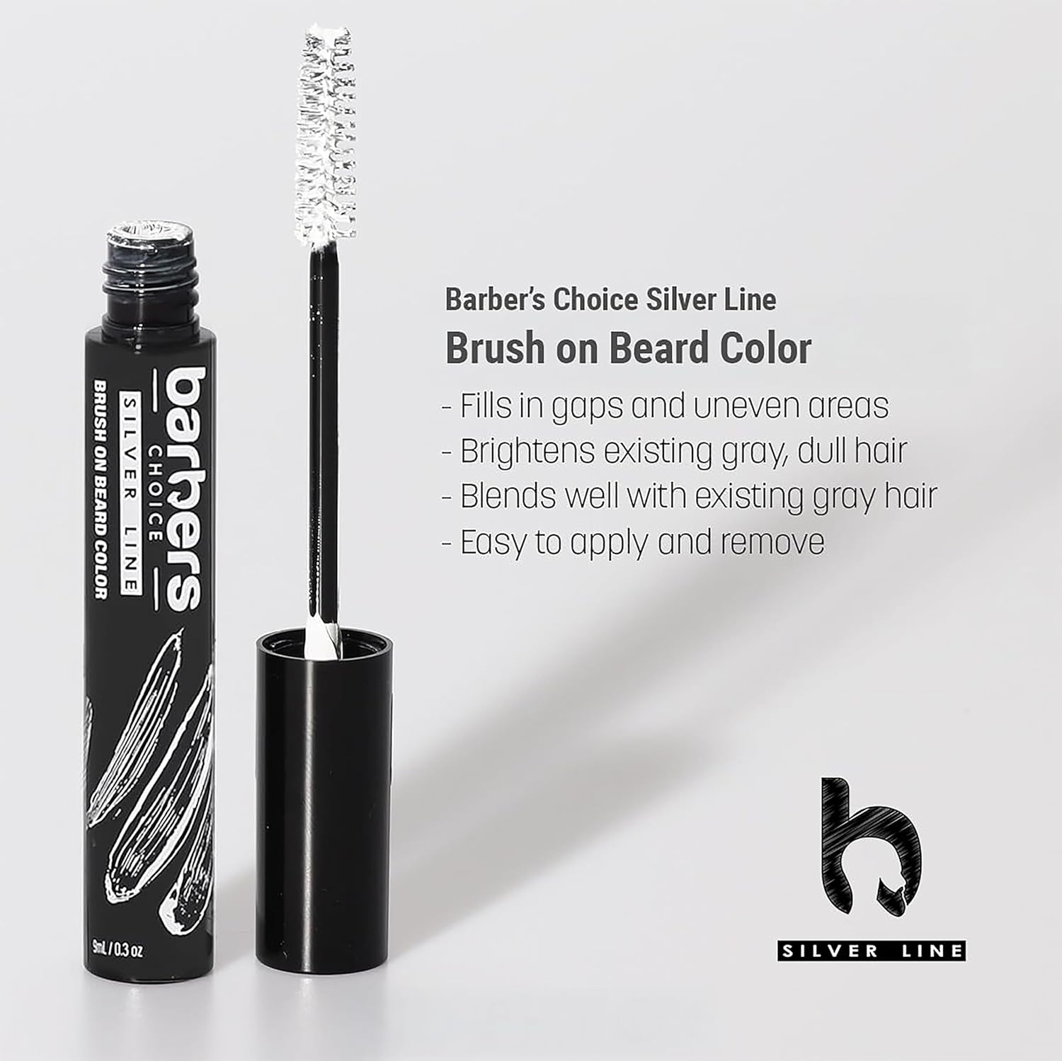 Barbers Choice Silver Line, Facial Hair Brush on Temporary Color for Silver Fox Men- Instantly Brighten White Beards, Mustache & Sideburns, Less Yellow, Easy Application, Steel Gray