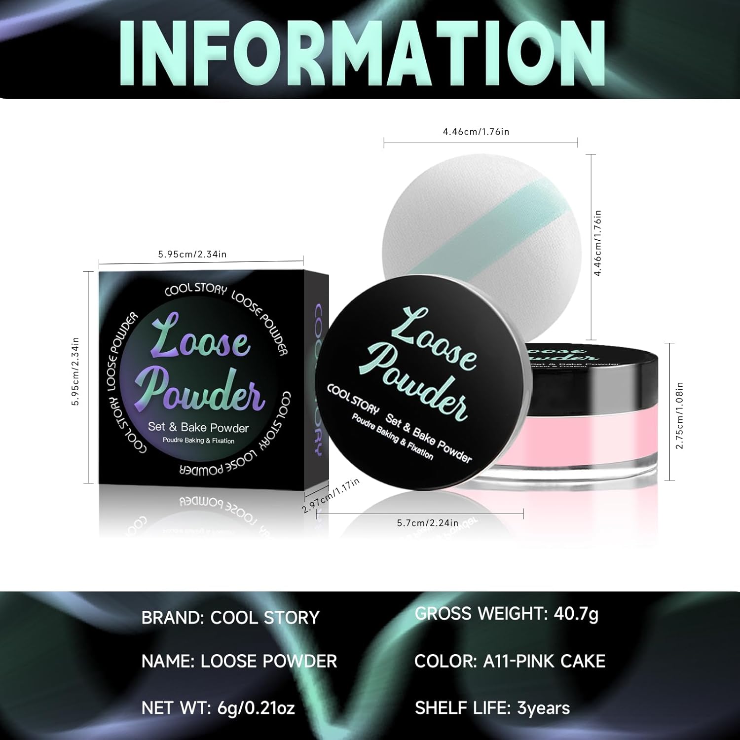 Loose Setting Powder, Bake Makeup Powder Full Coverage Matte Finish (Cakea, 6g/O.21oz)