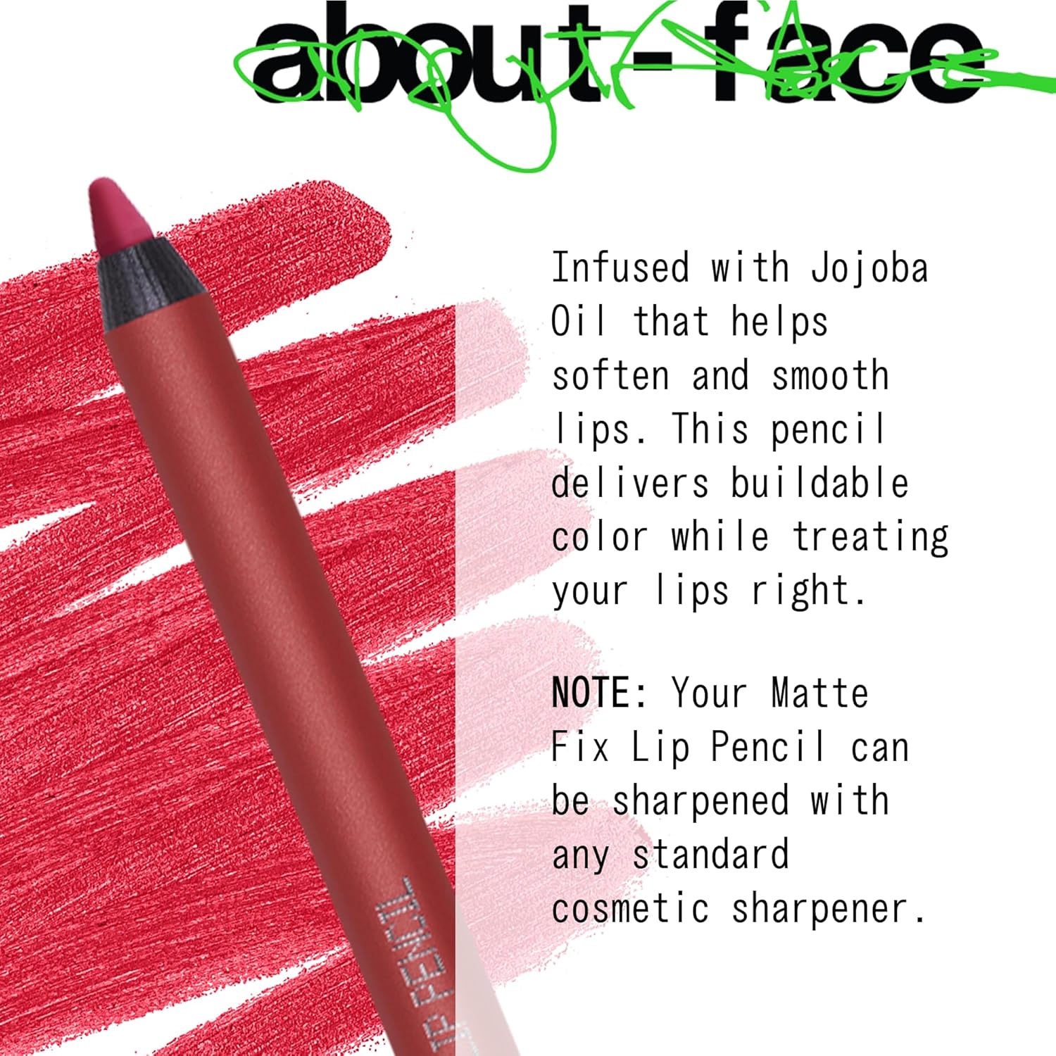 about-face Matte Fix Lip Pencil 4Ever Flame – Long-Wear, Creamy Matte Lip Liner with Hyaluronic Acid & Vitamins C & E – Vegan, Cruelty-Free, Clean Beauty – 0.042 oz (Cherry Red)