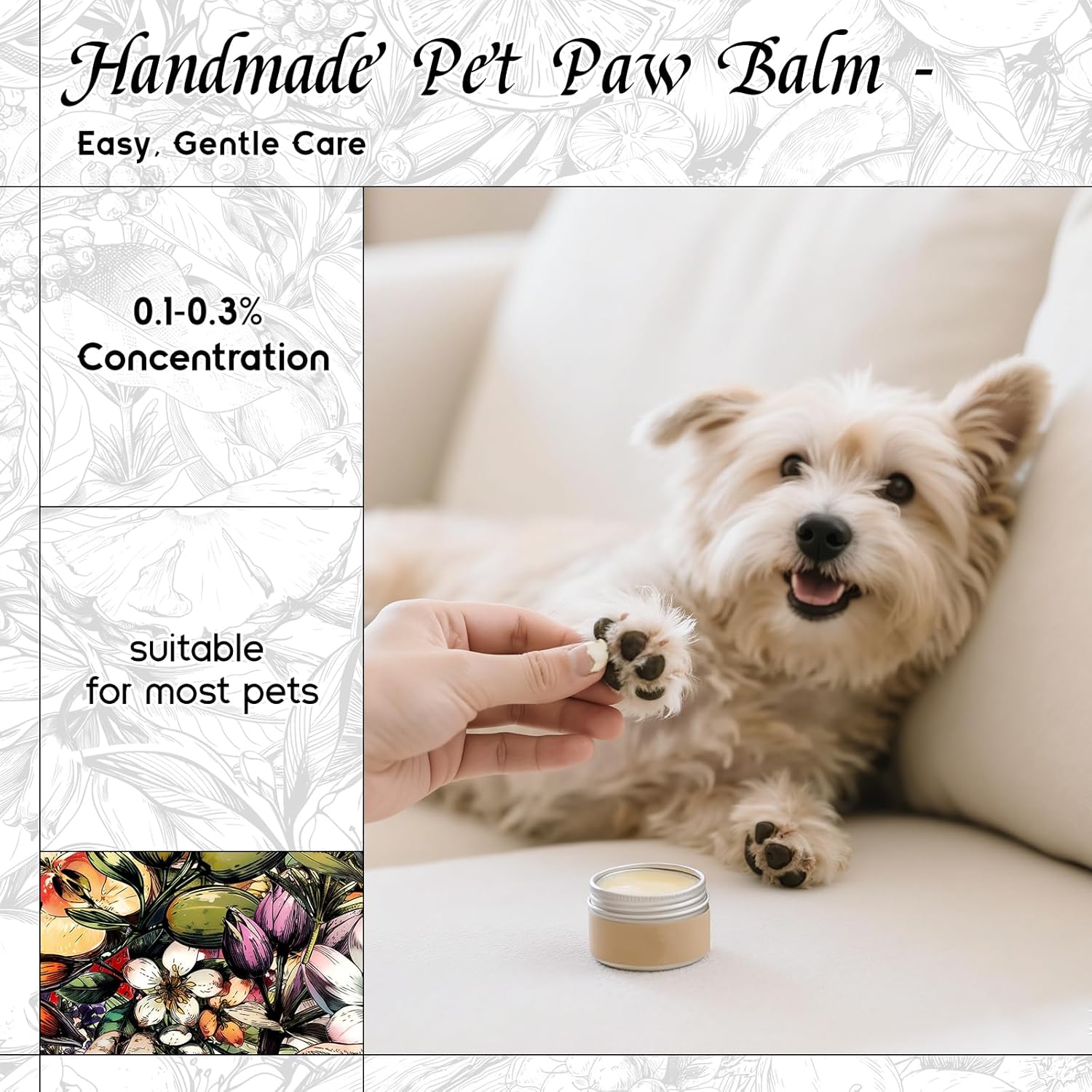 - Pet-Safe โ A gentle, pet-friendly formula suitable for homemade paw balms and sprays. Free from harsh alcohols