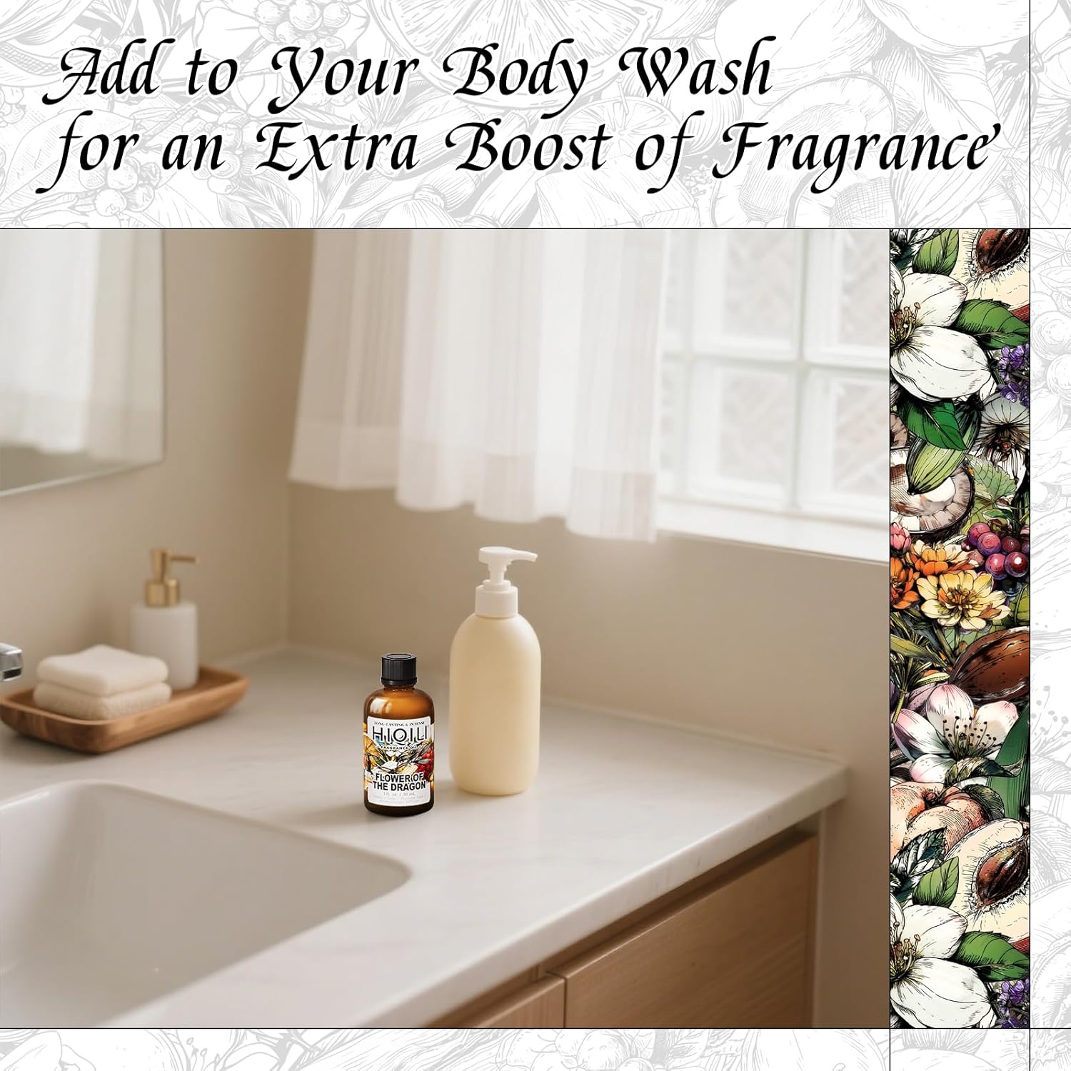 HIQILI Flower of The Dragon Fragrance Oil for Diffuser, Inspired by Td.Orient Fiore-deDrago, Candle, Soap, Perfume & Linen Spray Making, Vanilla Cream Scent, Long-Lasting Aroma - 1 Fl Oz