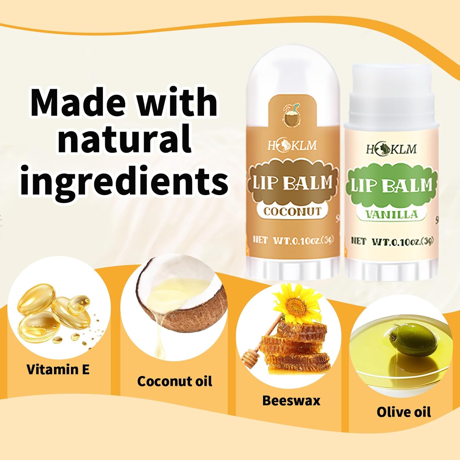 - Natural Lip Balm: Crafted with plant-based ingredients. Enriched with Coconut Oil, Olive Oil,and Vitamin E, it effectively soothes and repairs cracked lips, providing Moisturizing Lip Care for Dry Lips.