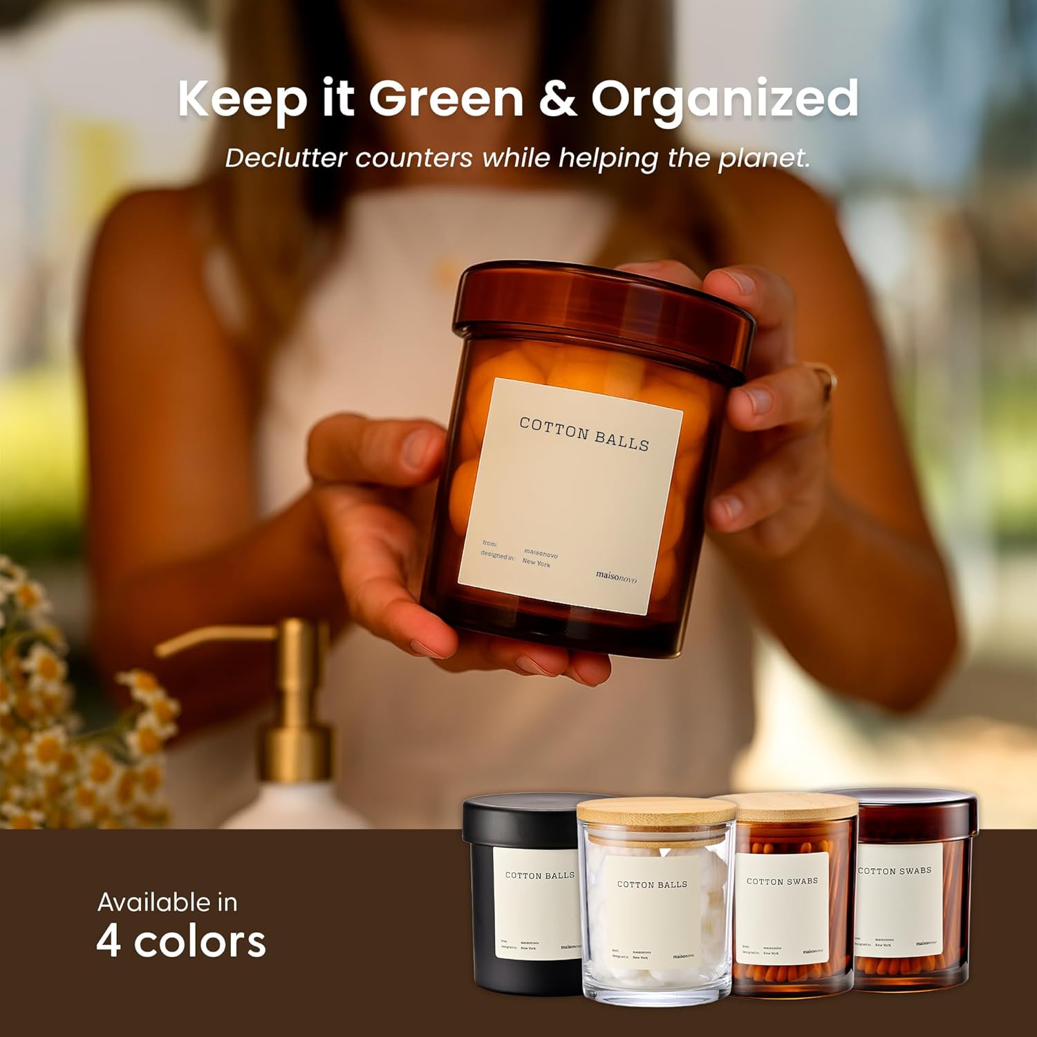 - Save Space on Your Countertop: You can store more in less space with jars that are compact yet roomy enough for daily essentials with our cotton ball and qtip holder set