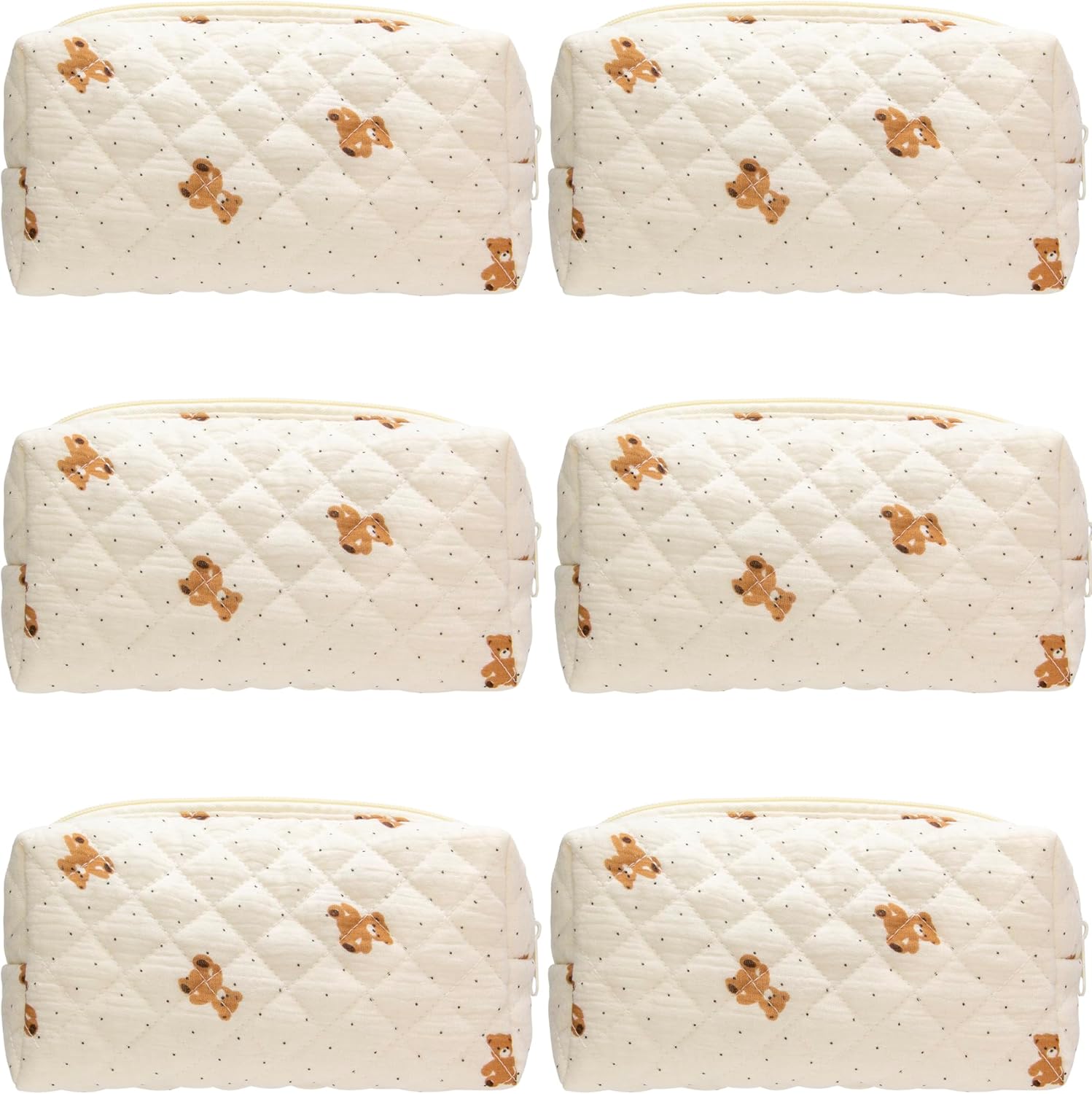 PAZIMIIK 6PCS Vintage Quilted Makeup Bag SET Cosmetic Pouch for Brushes Pencils and Travel Make Up Accessories for Women and Girls Bear Beige
