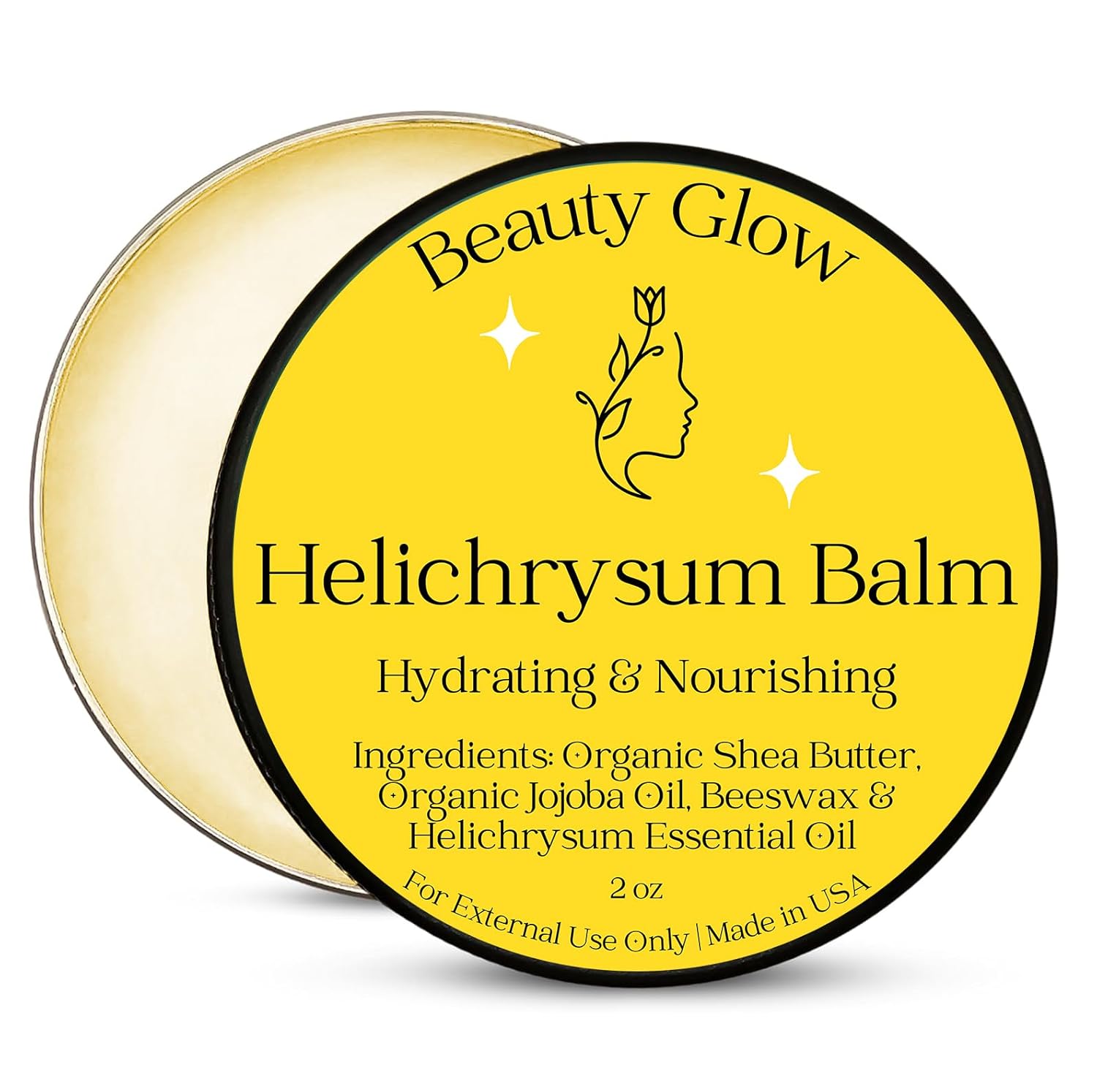 - β Handmade in the USA of 4 high-quality all natural ingredients: Organic Shea Butter, Beeswax, Organic Jojoba Oil & Helichrysum Essential Oil.