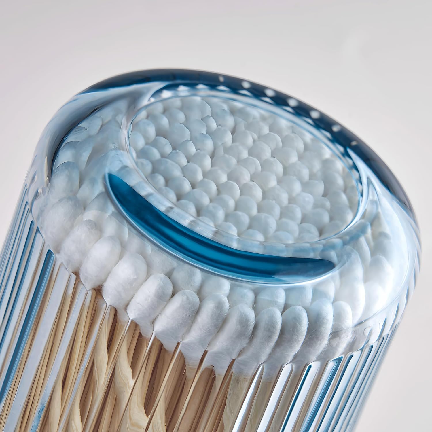 - DURABLE:Made from premium glass, this bathroom qtip dispenser feels smooth to the touch and is sturdy. The vertical design offers just the right level of transparency,easy to see what's inside while does not lose the mystery,express your unique taste.