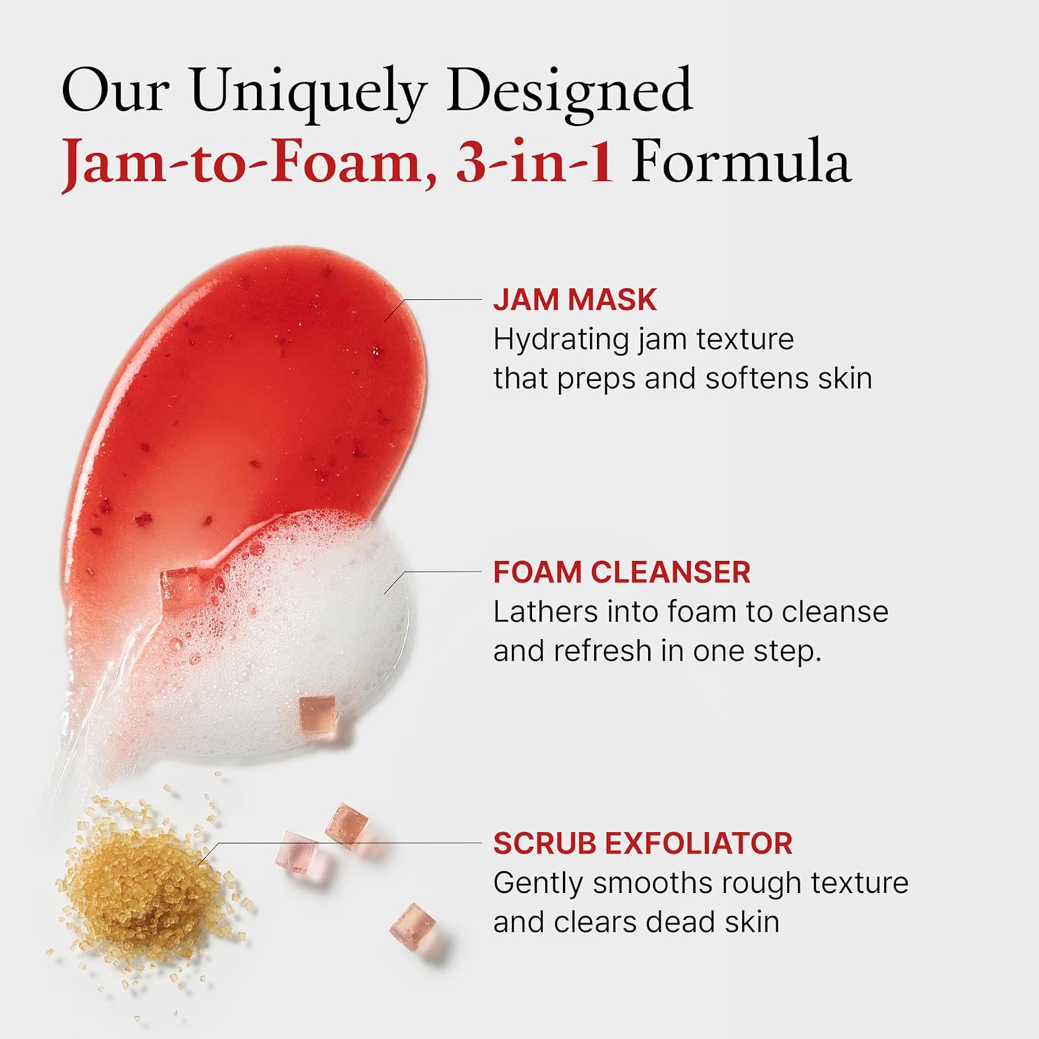 - 3-IN-1 FORMULA: Gently exfoliates with sugar particles to remove dead skin cells, while its mask-like jam texture nourishes and revitalizes the skin. Transforms into foam cleanser, delivering a refreshing deep clean and providing a versatile 3-in-1 skincare experience.