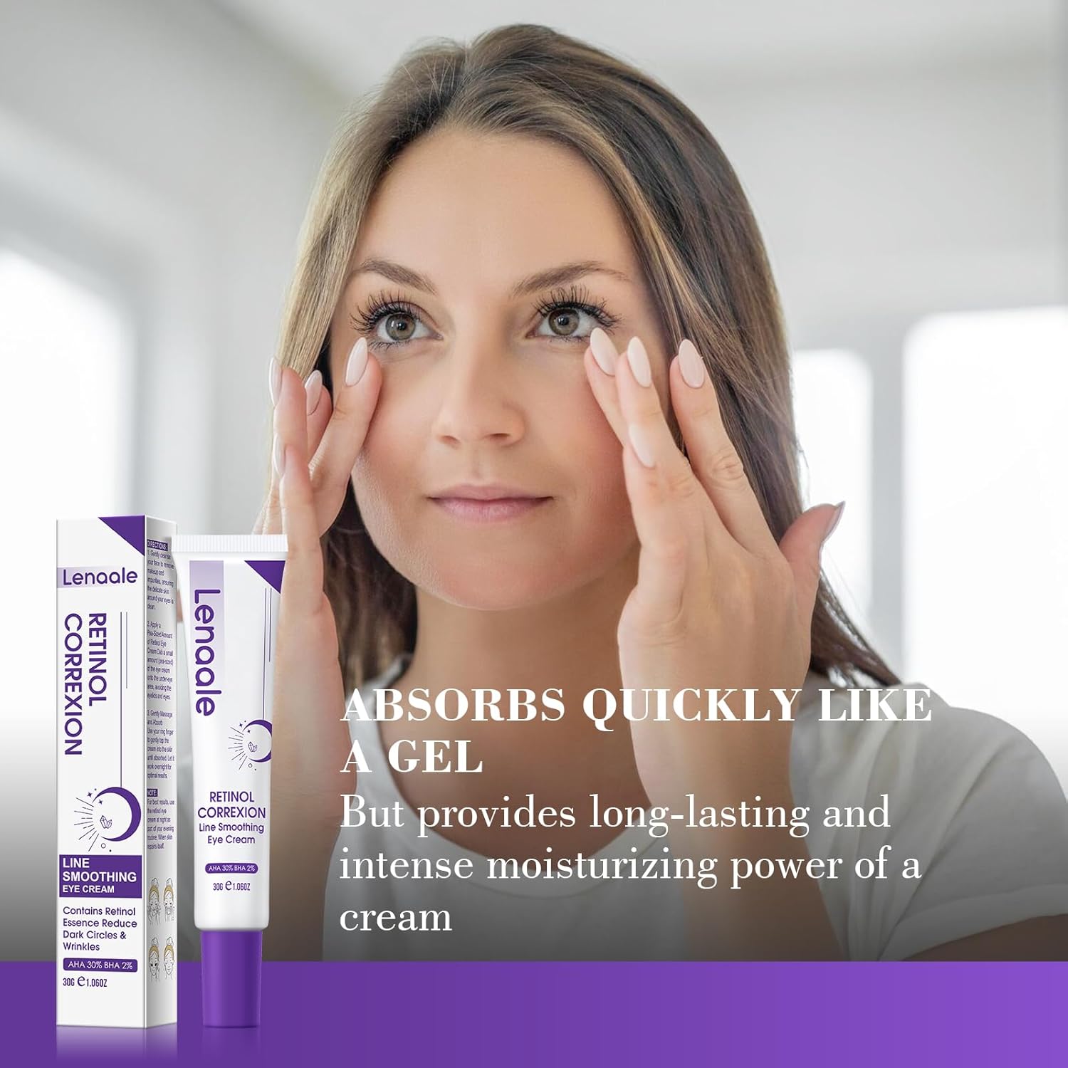 - ANTI-AGING FORMULA: Our Lenaale Retinol Eye Cream is specially designed to target the delicate skin around the eyes. Packed with retinol, a potent form of vitamin A, this eye cream helps reduce the appearance of fine lines and wrinkles, promoting smoother, firmer skin. Over time, it rejuvenates the area for a more youthful and radiant look