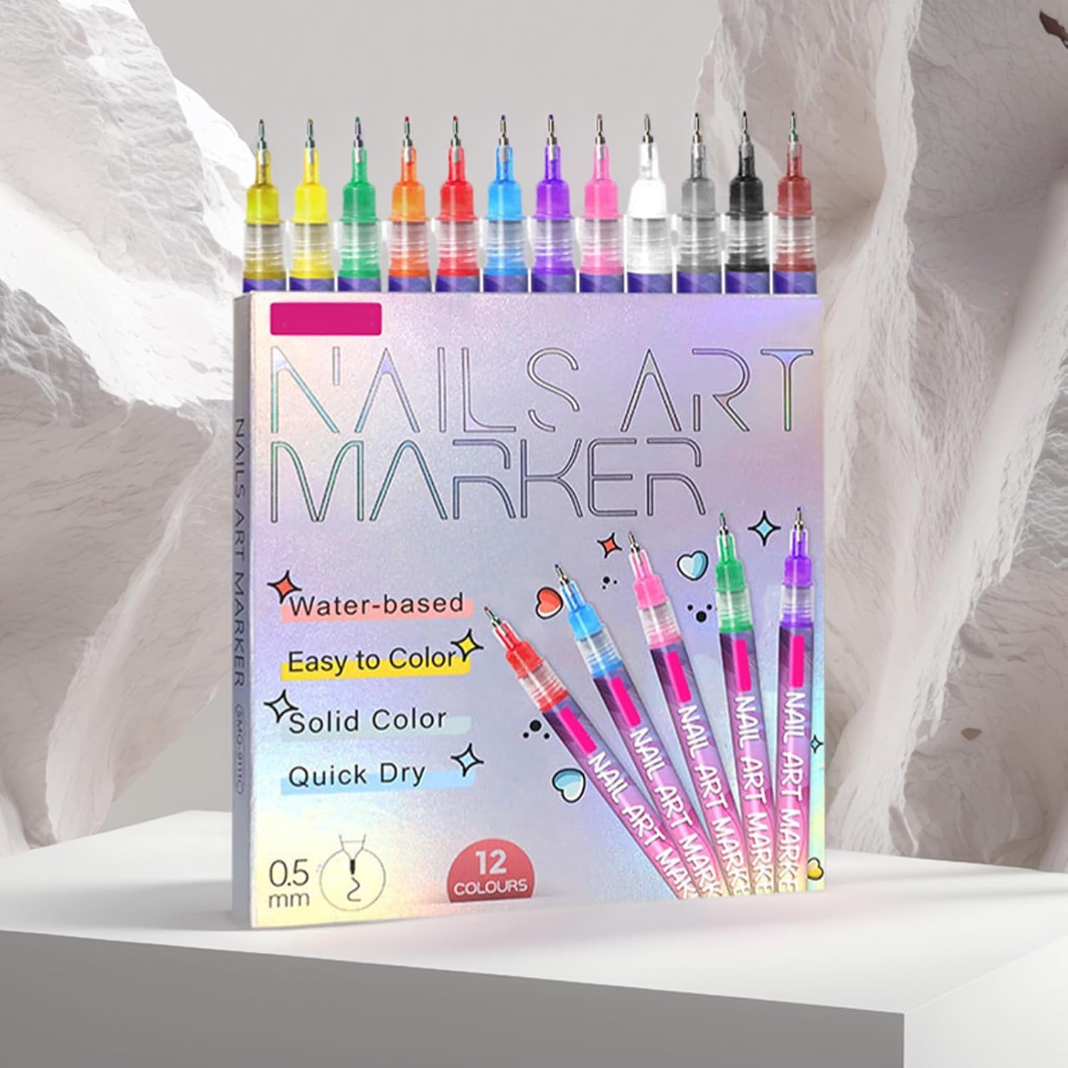 - ✨【12 Color Nail Art Pens】12 vibrant colors for endless creativity, this nail art pens set includes 12 bold, opaque shades, perfect for crafting unique manicures! Whether you want stripes, dots, or 3D designs, these nail art markers let you express your style easily. A must-have for anyone who loves custom nail art.